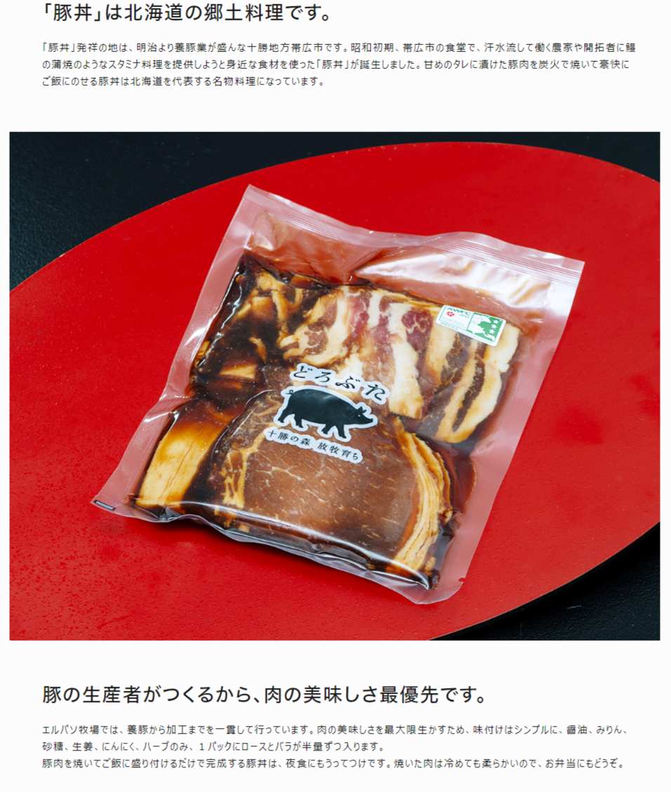 地元十勝の名物料理「豚丼」を手軽に楽しめる「どろぶたの豚丼用味つけ肉」をつくりました。