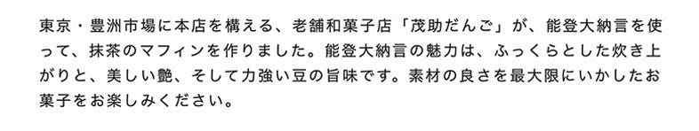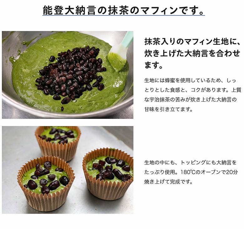 - セット内容:茂助だんご特製『能登大納言と抹茶のマフィン』4個