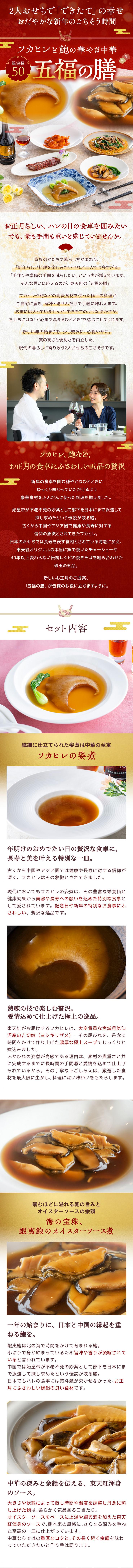 2人用おせちに、今年新発売の「フカヒレと鮑の華やか中華 五福の膳」をどうぞ!