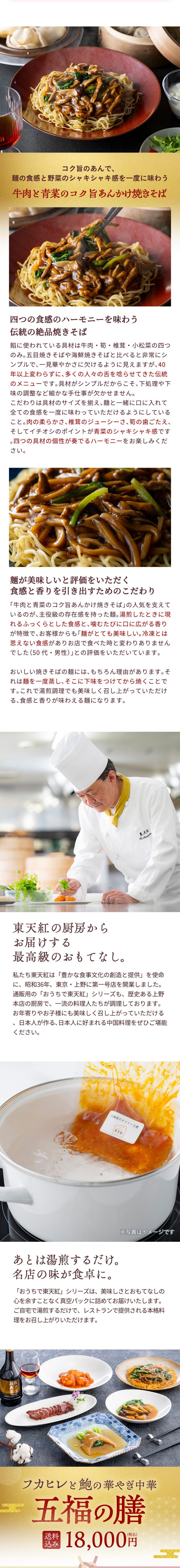 フカヒレ、鮑、国産窯焼きチャーシュー、海老チリ、牛肉焼きそば…