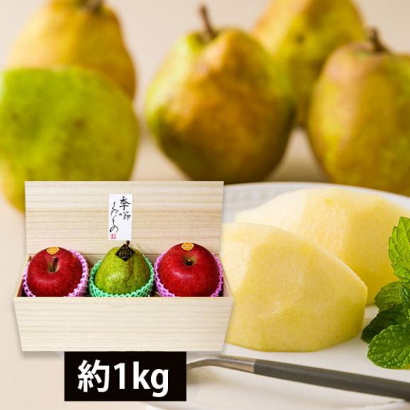《旬果》プレミアム洋梨ラフランスとふじりんご約1kg[桐箱入]