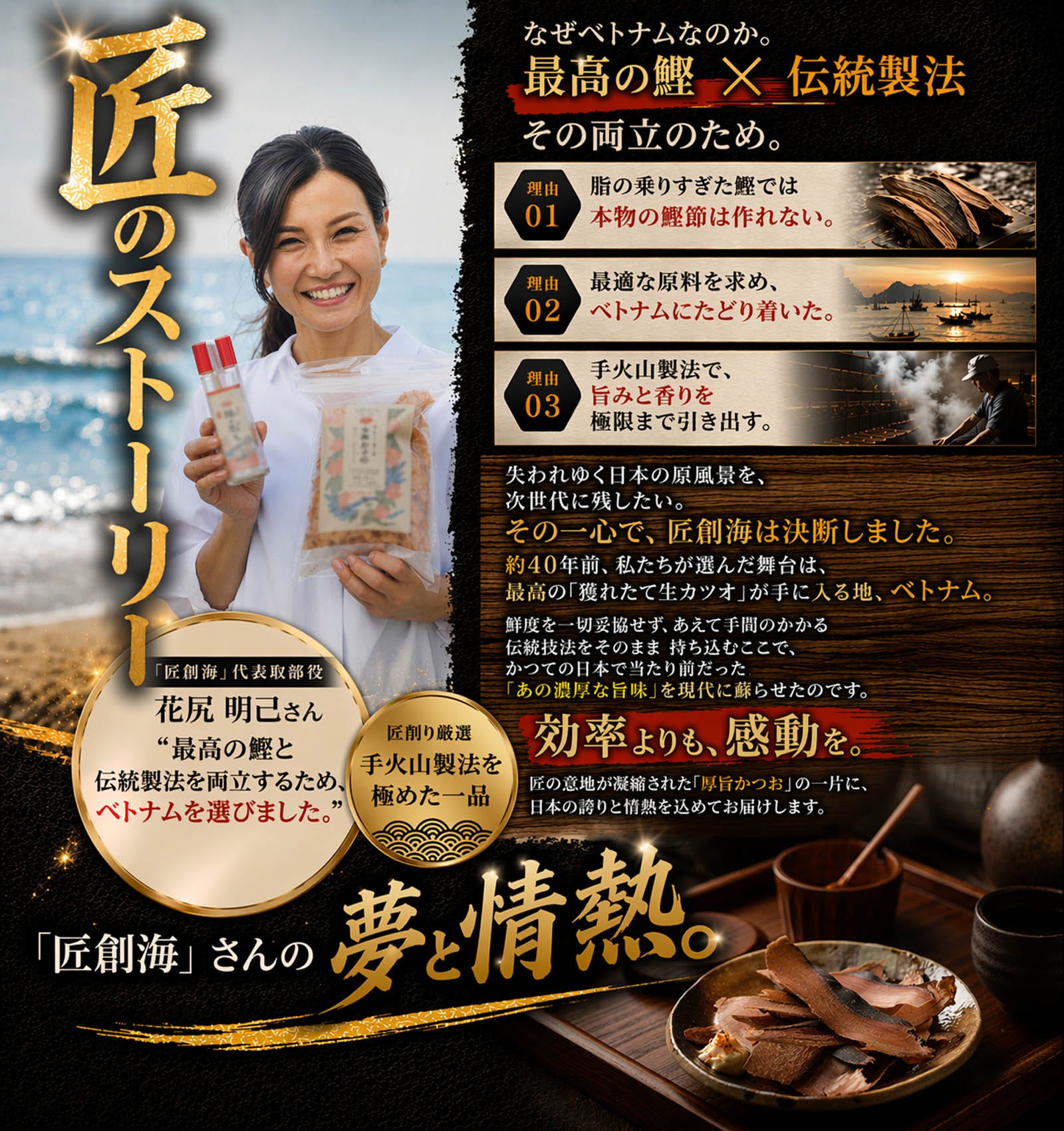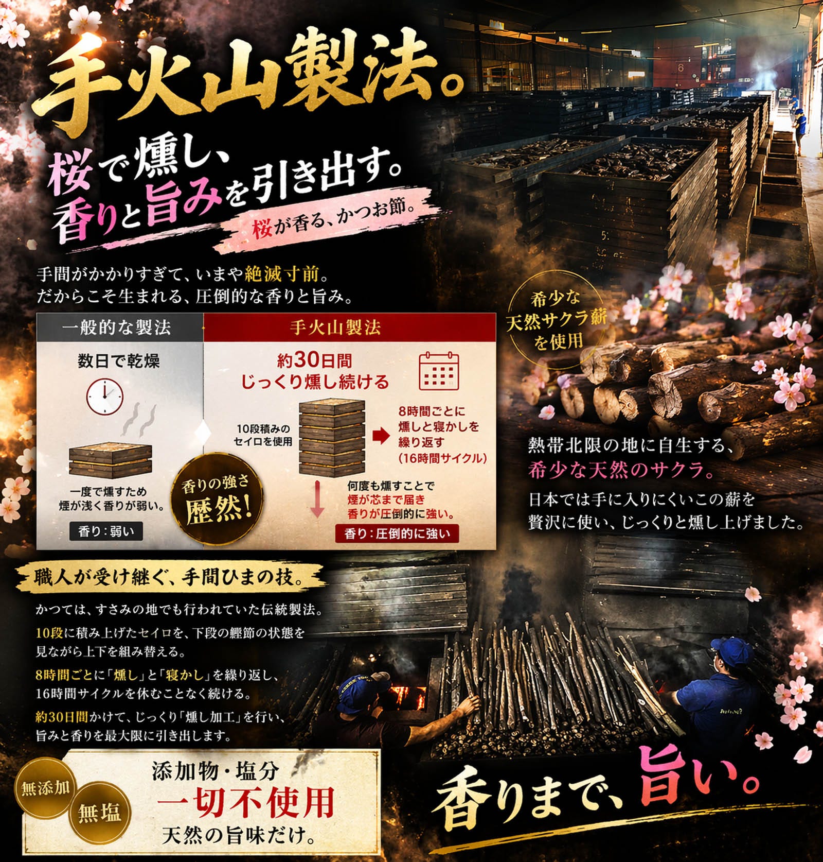 手火山製法で丁寧に仕上げた、伝統の鰹節「厚旨かつお」。