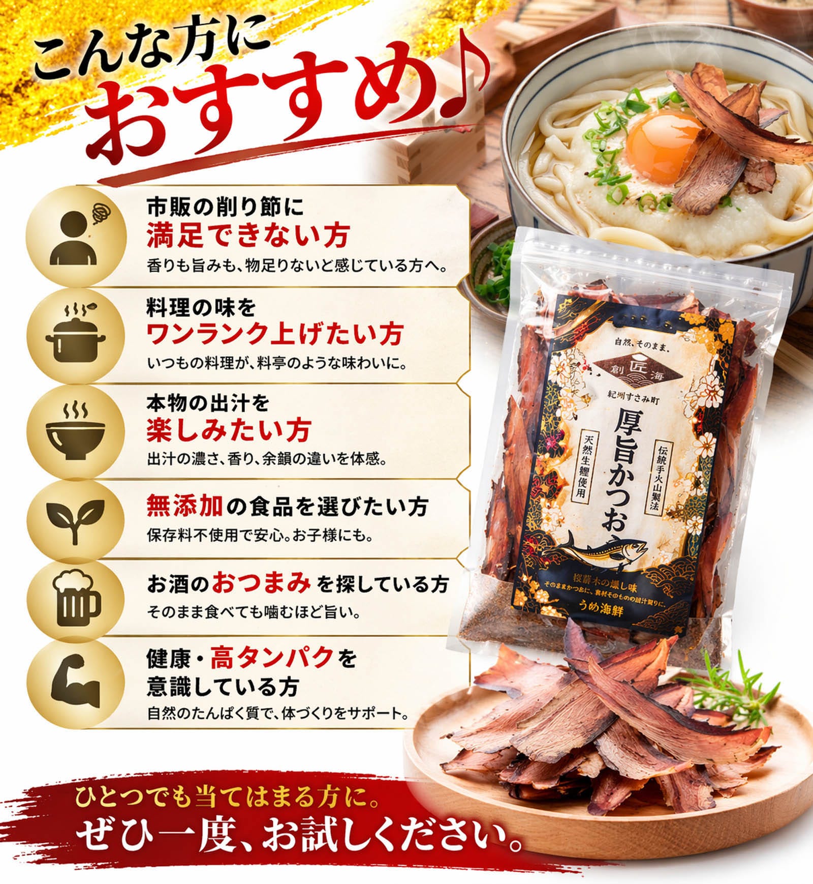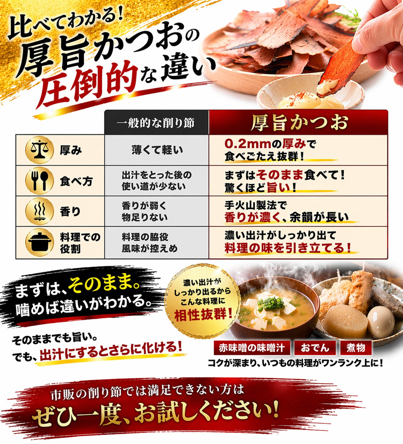 手火山製法ならではの奥深い風味と、厚削りならではの食べごたえをぜひご堪能ください。