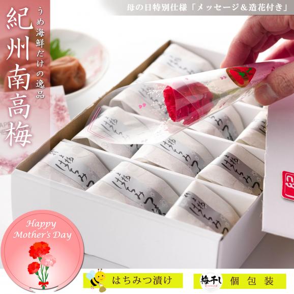 厳選された最高級の紀州南高梅です。ほんのり香るハチミツ漬けで、大粒&とろけるような果肉の柔らかさが特徴。 一粒づつ丁寧に個包装され、化粧箱入りでギフトに一押しの商品です。