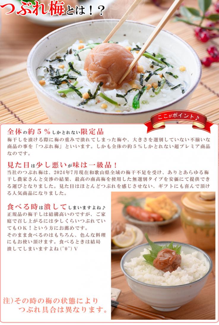 - 商品名:紀州南高梅 はちみつ梅減塩(塩分約5%) 名称:調味梅干 原材料名:梅、漬け原材料[還元水飴、食塩、果糖ぶどう糖液糖、リンゴ酢、はちみつ] /甘味料(スクラロース)、ビタミンB1 原料原産地名:和歌山県(梅) 内容量:1kg 賞味期限:常温約4-5ヶ月(パッケージ裏面に記載) 保存方法:直射日光、高温多湿を避けて保存(開封後は冷蔵保存) 使用上の注意:梅干しには種があり、先がとがっている物がありますのでご注意下さい。 栄養成分表示(可食部100g当たり)推定値 エネルギー107kcal、蛋白質0.9g、脂質0.4g、炭水化物25.1g、食塩相当量4.8g