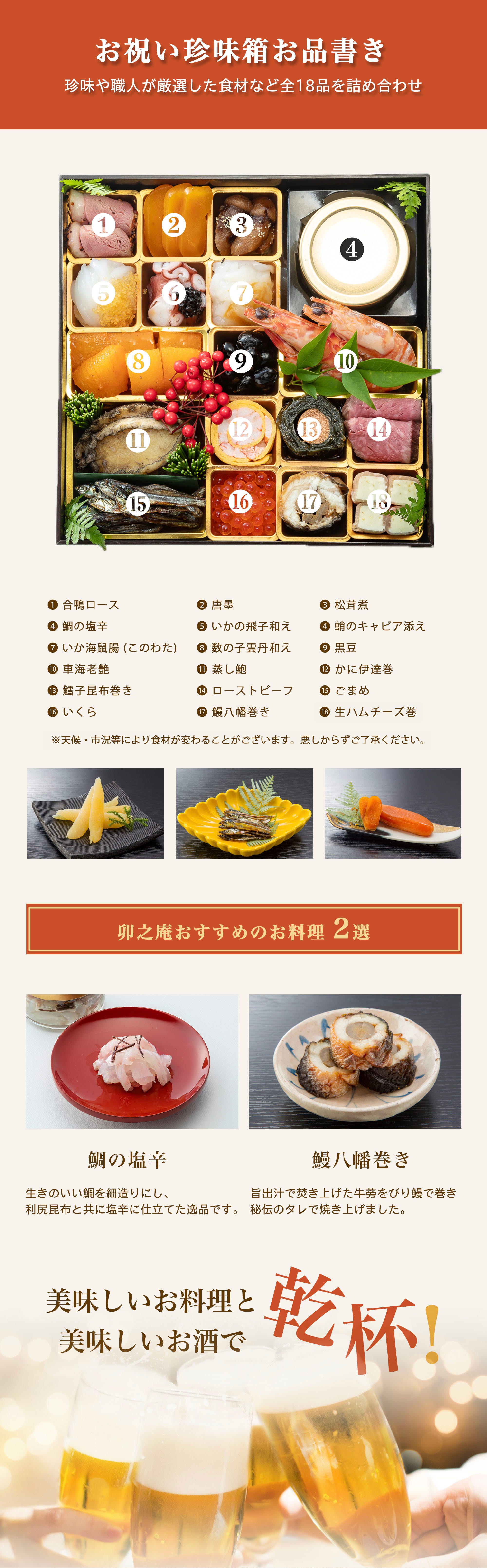 - えび、かに、小麦、卵、乳、あわび、いか、いくら、牛肉、ごま、さけ、大豆、ゼラチン