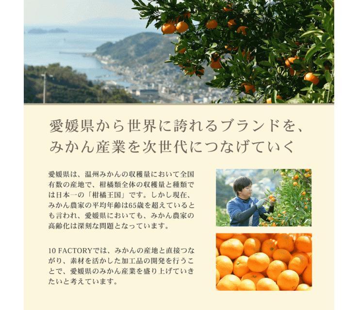 愛媛みかんの良さを伝えたい、トコトンこだわって作った10FACTORYの100%ストレートジュースを、ぜひご賞味ください。