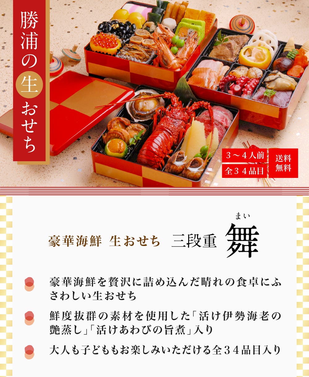 31日着まだ間に合う!800円お得!【送料無料】豪華海鮮生おせち「華」ニ段重・2~3人前 (伊勢海老入り) 《生》本マグロのおまけ付!