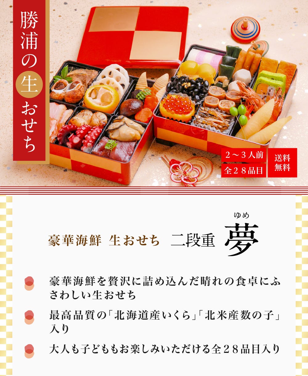 31日着まだ間に合う!800円お得!【送料無料】豪華海鮮生おせち「華」ニ段重・2~3人前 (伊勢海老入り) 《生》本マグロのおまけ付!