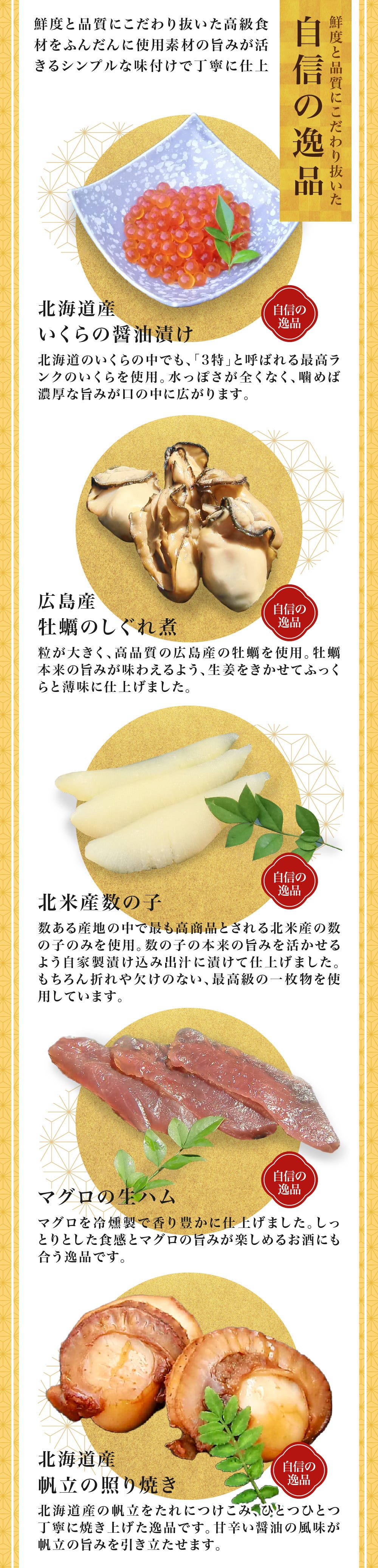 目利きの料理人が選んだ上質で鮮度抜群の海鮮をふんだんに盛り込んだ海鮮生おせち。