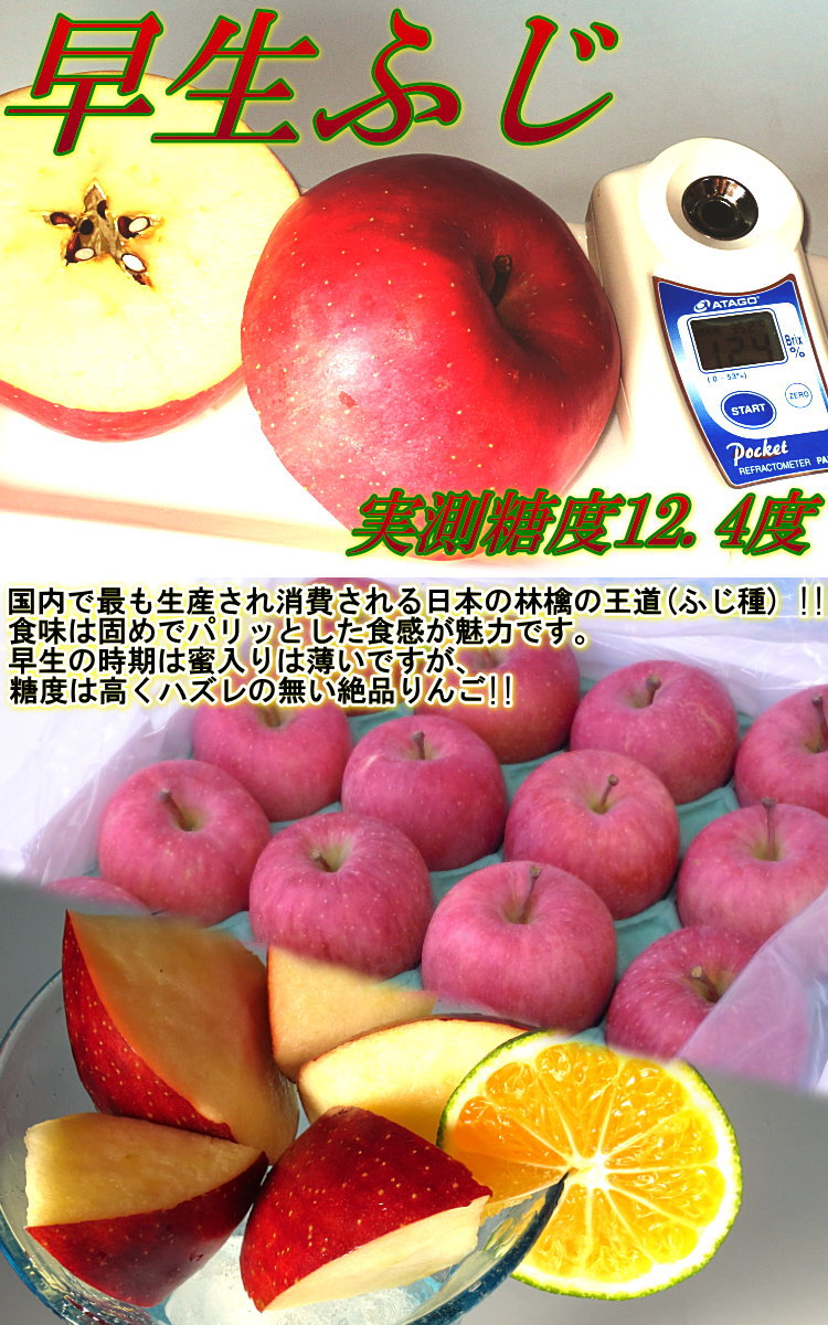 商品 | 葉取らずフジ【糖度センサー選果済み・訳あり品:果皮にスレやキズ、色むら等のあるものを含む】 |