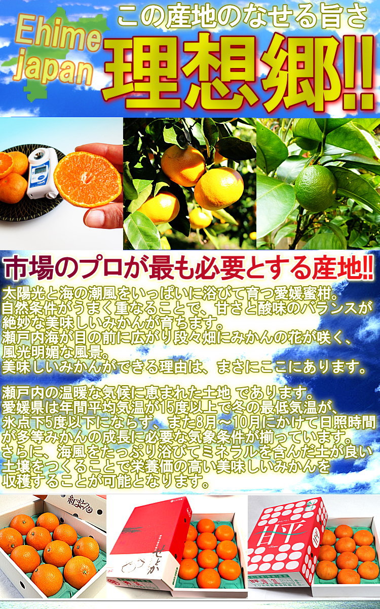 愛媛県はせとかや甘平、紅まどんな等の高級柑橘や、伊予柑・ポンカンなど出荷量日本一の品種を数多く有する有数の大産地です!