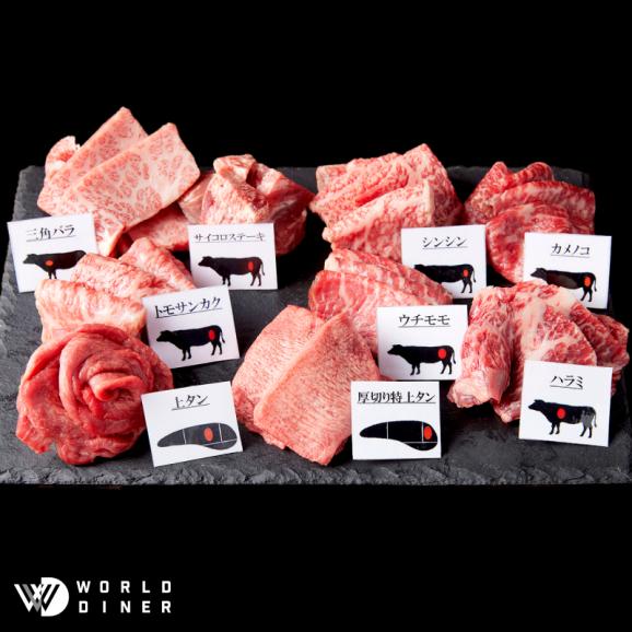 3~4人前 ウチモモ・トモサンカク・シンシン・カメノコ・三角バラ・ハラミ・厚切り特上タン・上タン・サイコロステーキ 各80g 計720g